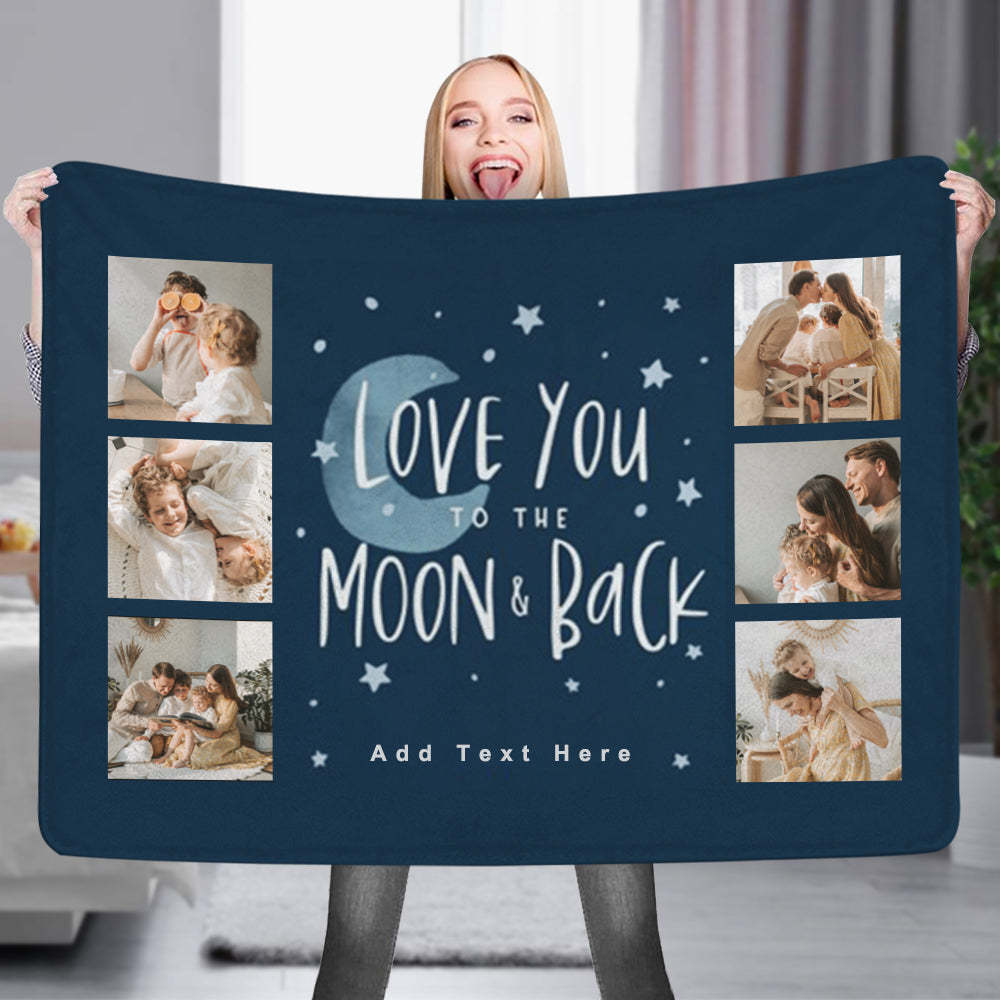 Custom 6 Photos&Text Fleece Blankets Love You To The Moon